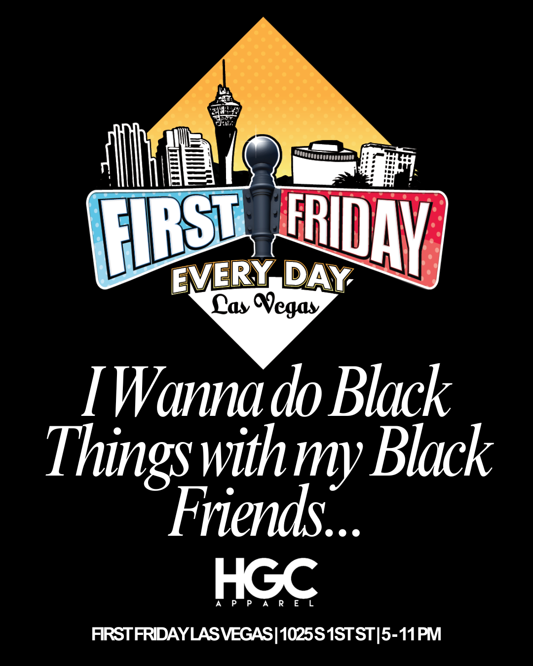 First Friday is a monthly celebration of art, music, and food, and weโre honored to be a featured vendor at this iconic event in the Las Vegas Arts District. Whether youโve been rocking with HGC for years or youโre just discovering us, this is your chance to shop our exclusive pieces in person, connect with the culture, and experience our brand like never before.